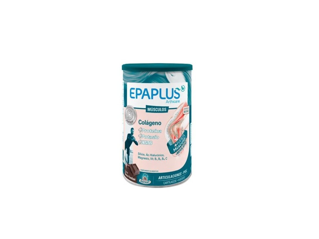 Epaplus Arthicare Músculos es un complemento alimenticio que ayuda al mantenimiento de la salud del sistema músculo-articular por su contenido en colágeno hidrolizado, silicio (del extracto de bambú), HMB (hidroximetilbutirato), proteínas séricas, potasio, ácido hialurónico, magnesio, vitamina C y vitaminas B1, B2 y B6. Con un delicioso sabor a chocolate fondant y fácil disolución instantánea.