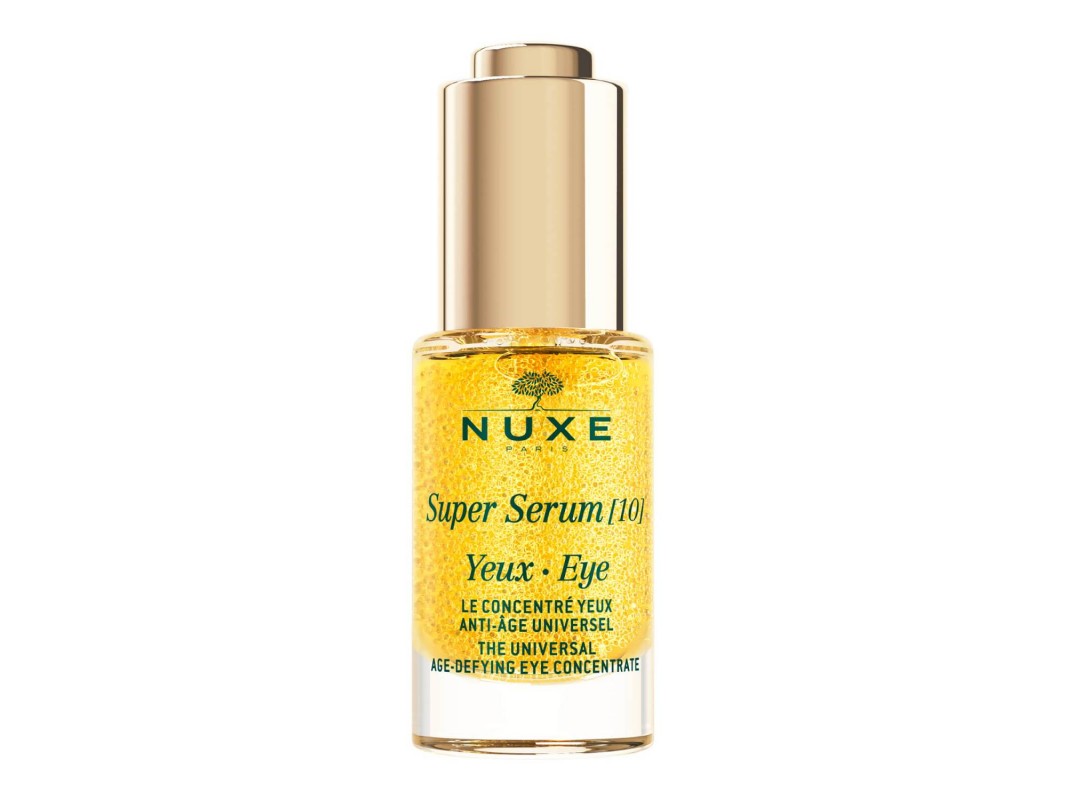 NUXE aplica el poder antiedad de Super Serum [10] a las necesidades específicas del contorno de ojos. Su fórmula con Ácido Hialurónico y Cafeína Vegetal integra miles de micro-esferas de Aceites Vegetales fraccionados. Un sérum concentrado de extraordinaria eficacia antiedad para una corrección de 360° del contorno de ojos: arrugas, ojeras, bolsas, marcas de cansancio.
